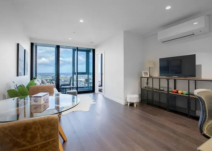 A 2 szobás Amazing Cityview 2Br Apt With Carpark Melbourne olyan turisztikai látványosságok közelében található, mint a csupán 5 percnyi sétára található Vincent Design. Az apartman olyan kényelmi szolgáltatásokat nyújt a vendégek számára, mint a vasaló, vasalódeszka, továbbá mosógép szintén elérhető, hogy kényelmesebb legyen a tartózkodás.